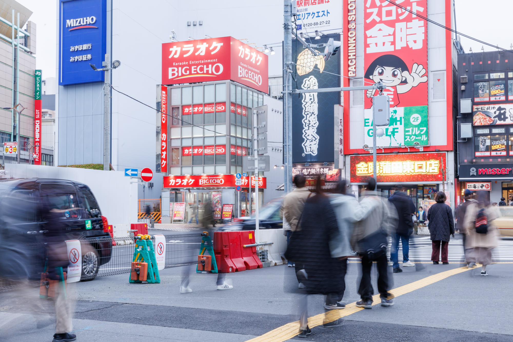 まずJR蒲田東口前の横断歩道をわたり、左にまがってください。