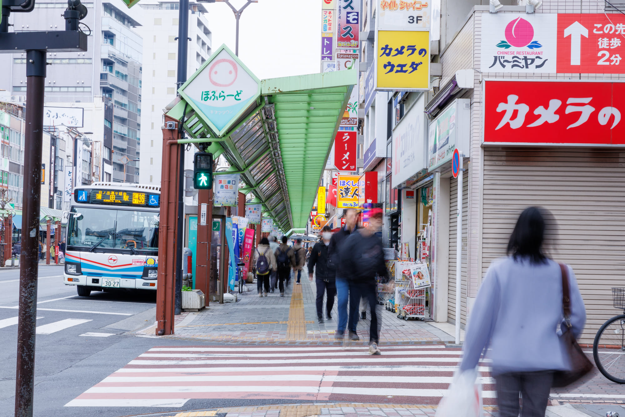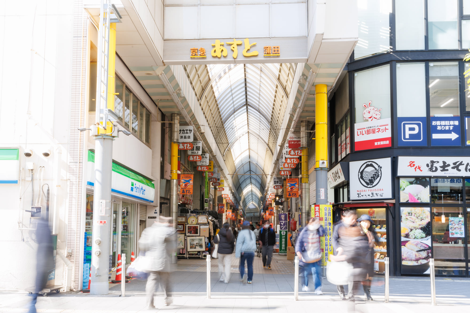 京急蒲田駅(2階)西口から、下へ降りると、あすと商店街アーケードが見えてきます。
