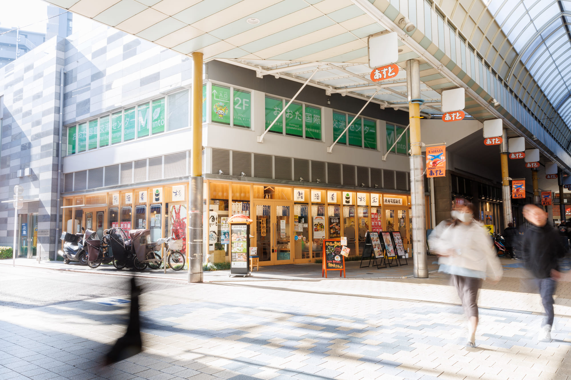 あすと商店街を少し進むと見える、この建物2階が、「おおた国際交流センター(Minto Ota)」です。