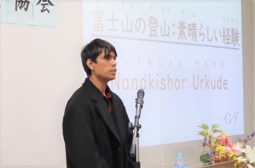 昨年度の「日本語でスピーチ」では、富士山登山の体験を力強くスピーチし、観客から大きな拍手をもらいました。インドのご家族もオンラインでナンドさんのスピーチの様子を視聴したそうです。
