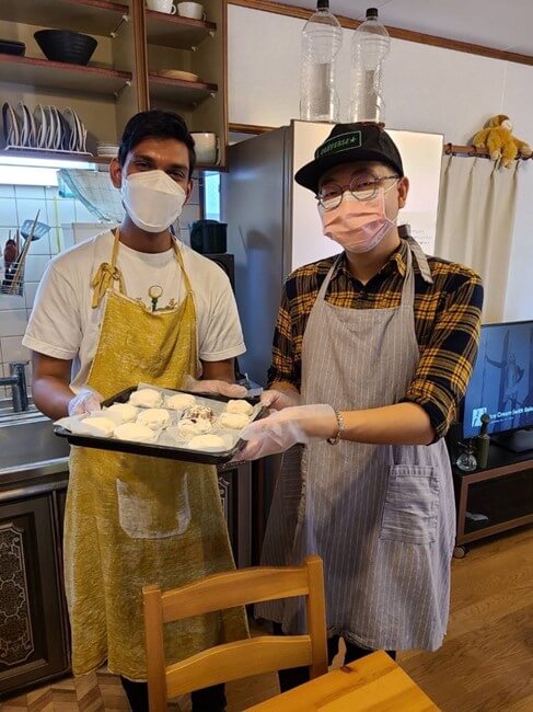 また、昨年秋の「ホームビジット」では日本人のお宅を訪問。「ご夫婦や他の参加者の方と一緒にお団子を作りました。たくさん話もして、とても楽しかったです。」