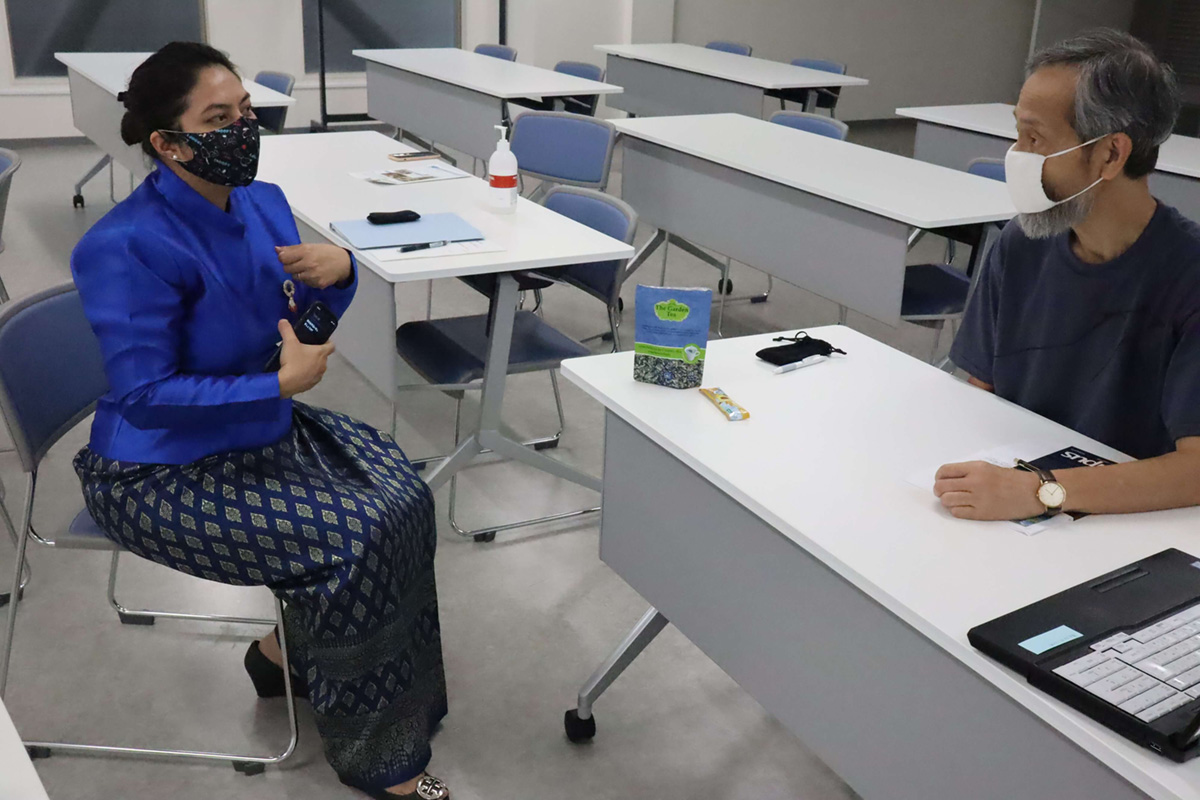 タイの大学で日本語を専攻し、交換留学生として日本の大学で1年間学び、タイへ戻った後、再び来日して日本の大学院を修了しました。「大学1年生の時、バンコクで映画「となりのトトロ」(宮崎駿監督)を見ました。日本のマンガやアニメは、タイでとても人気があります。留学前は日本語にはけっこう自信がありました。でも、日本に来た時に電車の車内放送がよくわからなくてショックを受け、留学中はしっかり勉強しました。」と振り返ります。