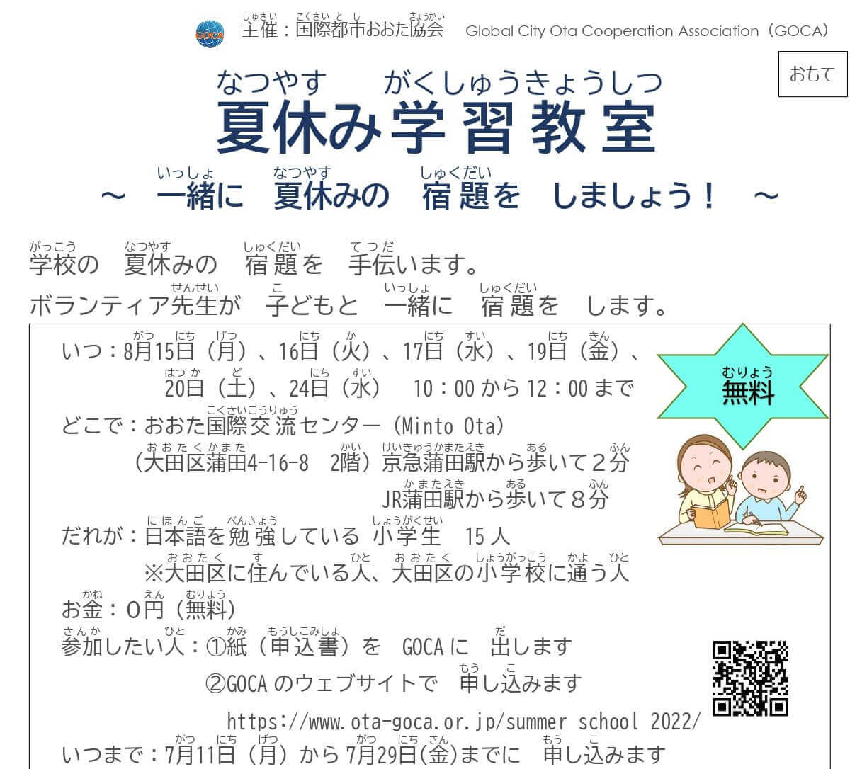 「夏休み学習教室」 2024年8月7日(水曜日)~9日(金曜日)